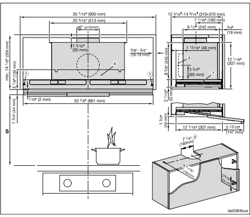 Схема встраивания для кухонной вытяжки Miele DAS 8930