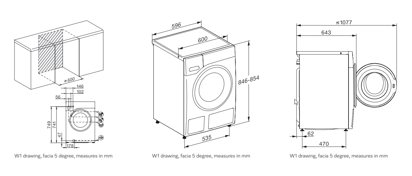 Схема встраивания 1 для стиральной машины Miele WWB680 WCS 125 Edition