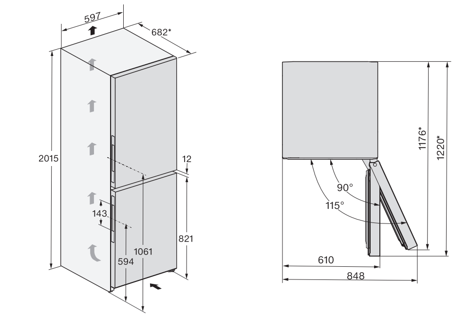 Схема встраивания для холодильника Miele KFN 4795 DD CleanSteel