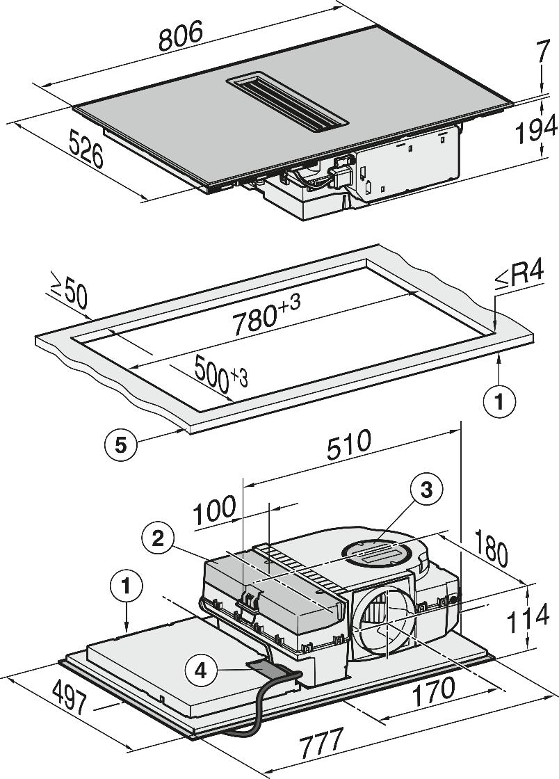Схема встраивания для варочной панели Miele KMDA 7272 FR-U