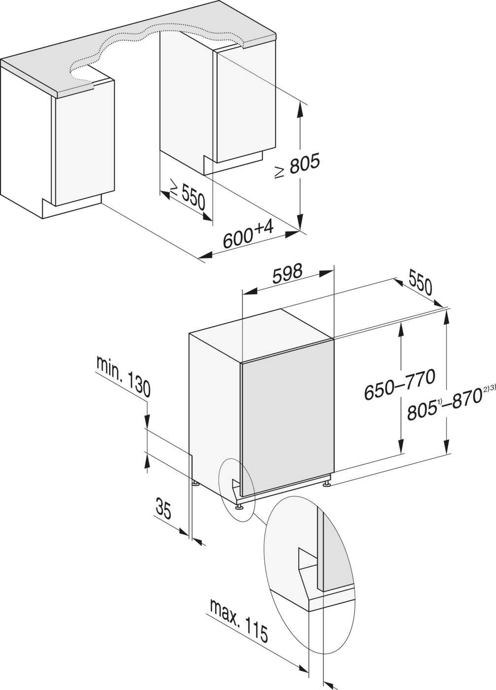 Схема встраивания для посудомоечной машины Miele G 7180 SCVi