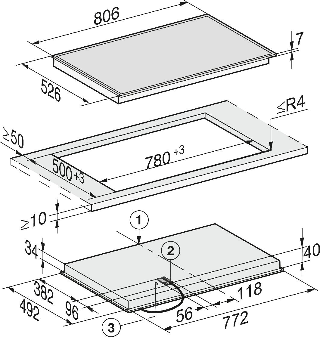 Схема встраивания для варочной панели Miele KM 6564 FR