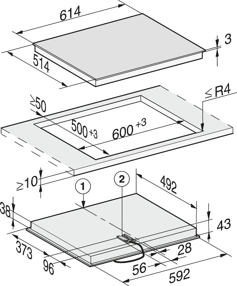 Схема встраивания для варочной панели Miele KM 6521 FR