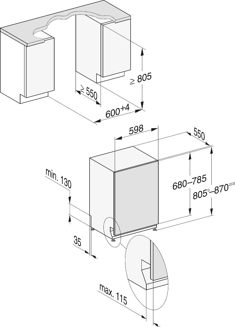 Схема встраивания для посудомоечной машины Miele G 7380 SCVi FF EDST