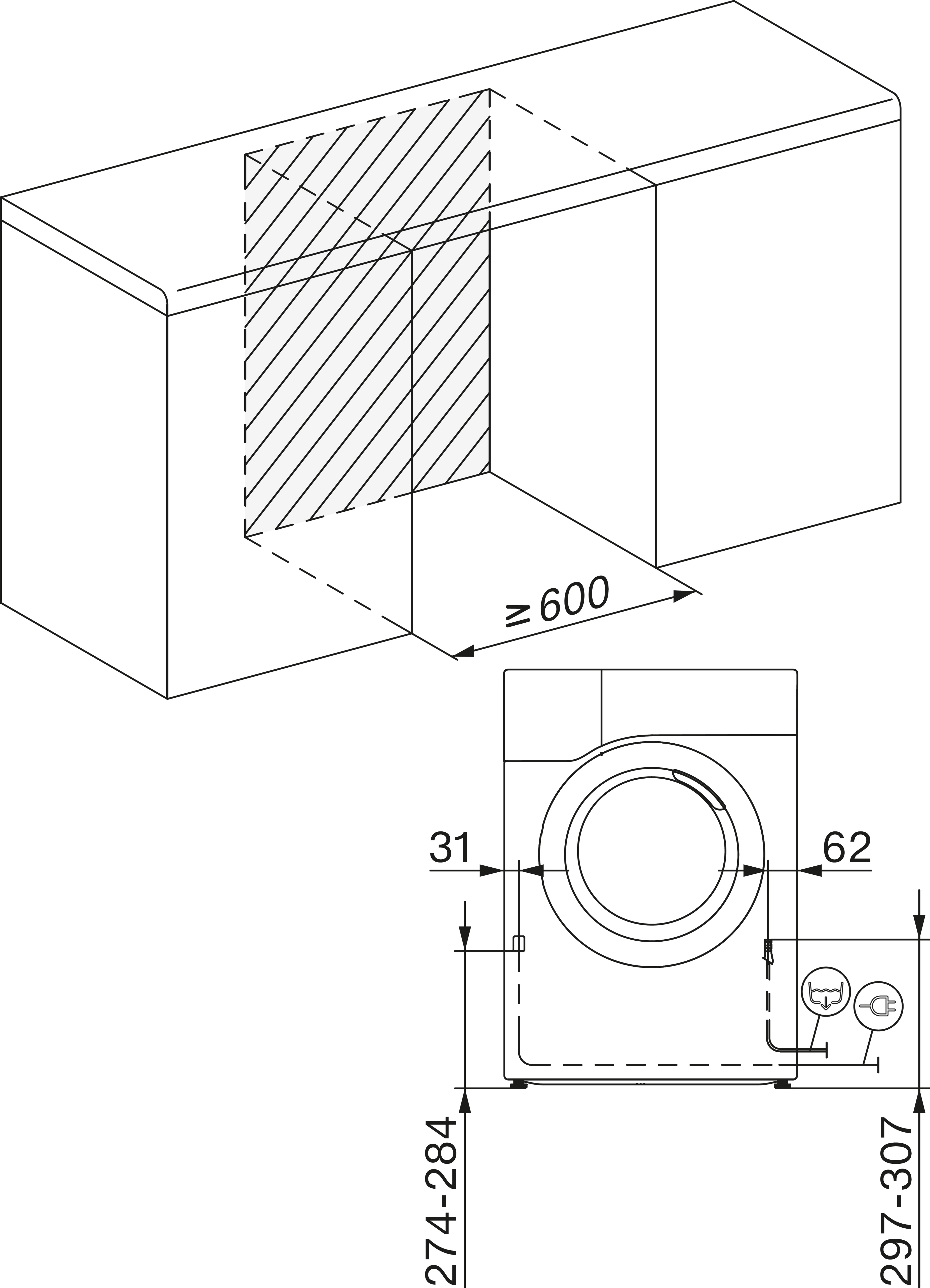 Схема встраивания 2 для сушильной машины Miele TEC645WP