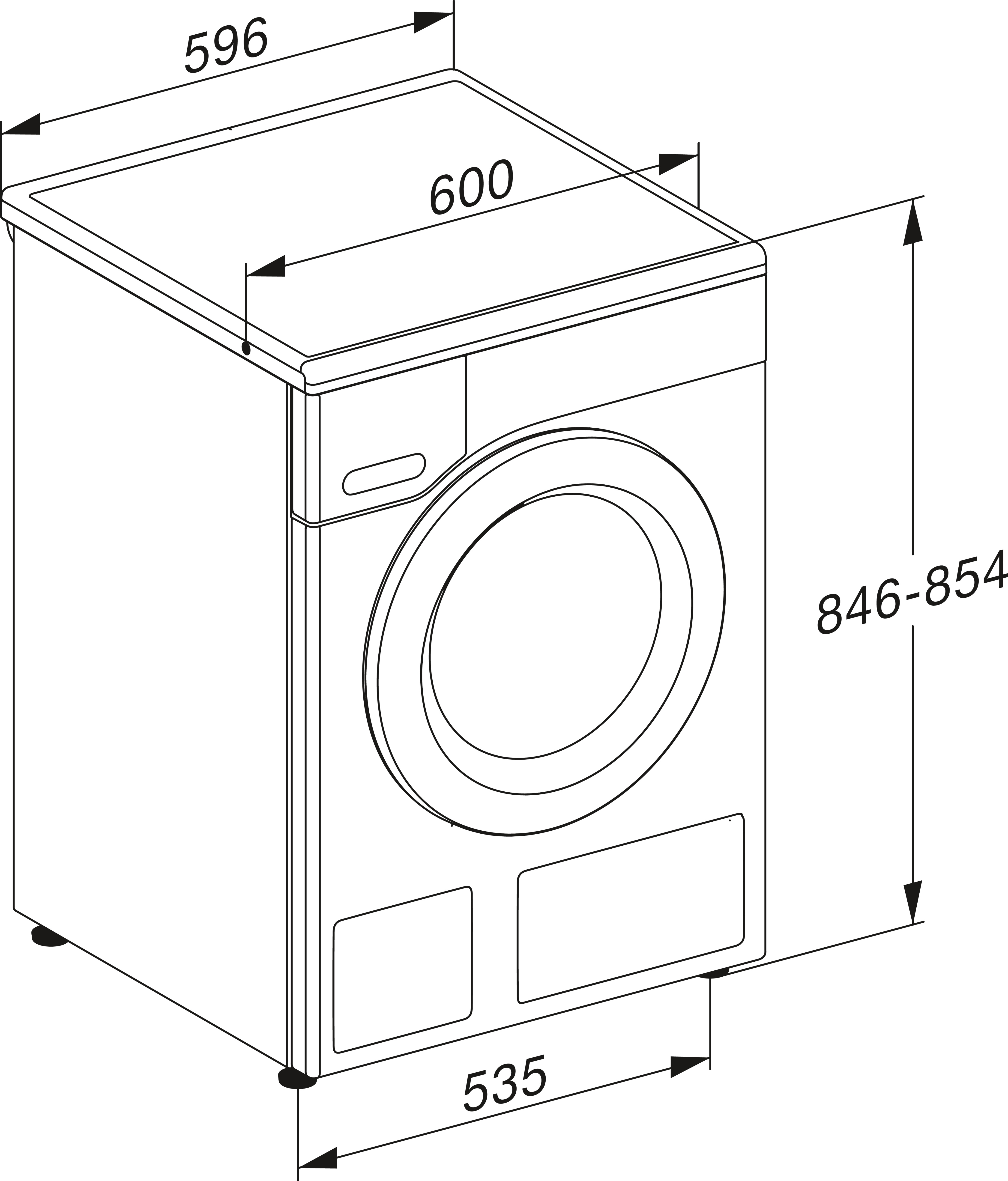 Схема встраивания 1 для стиральной машины Miele WTD160WCS на иностранном языке