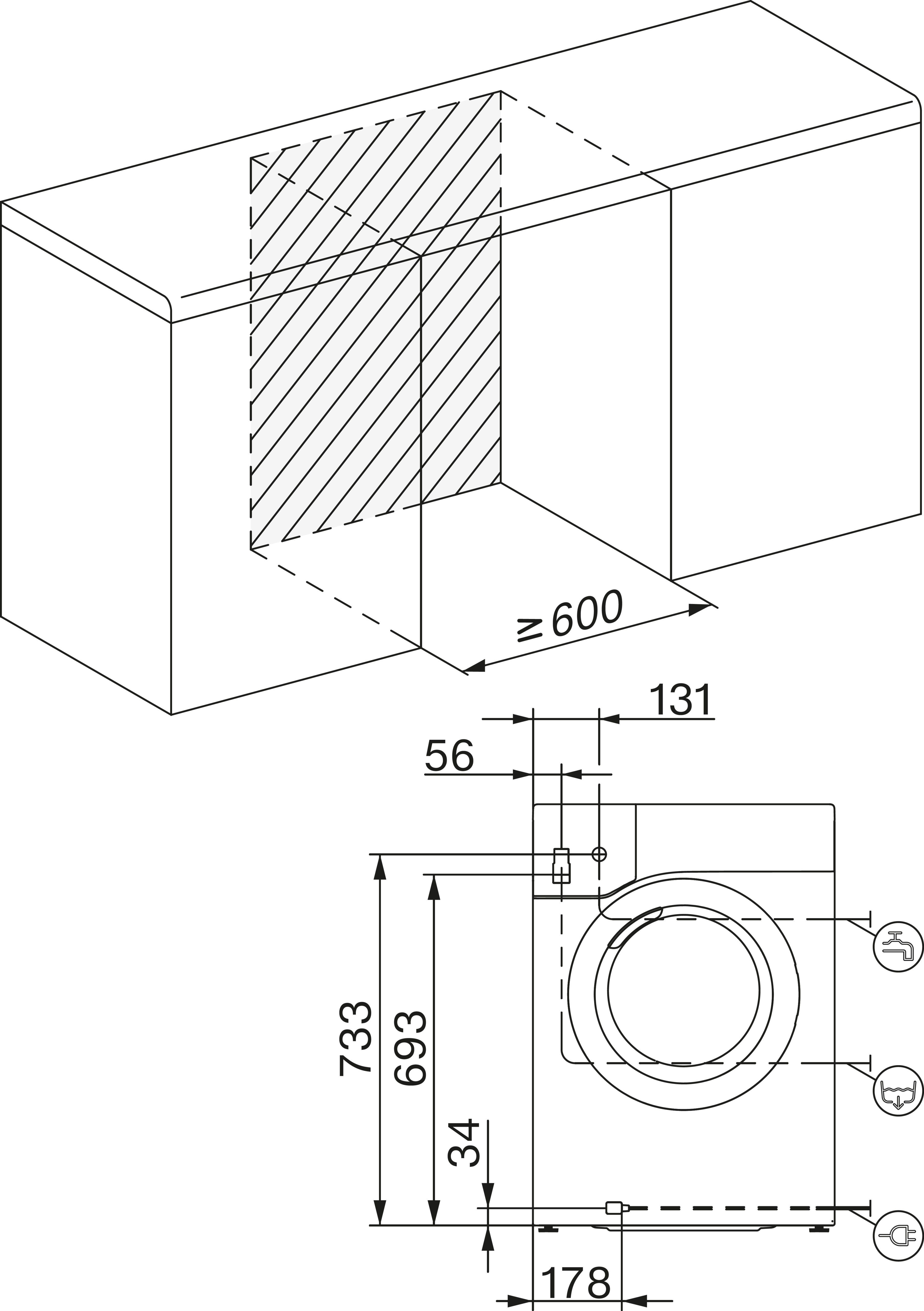 Схема встраивания 4 для стиральной машины Miele WTD160WCS на иностранном языке