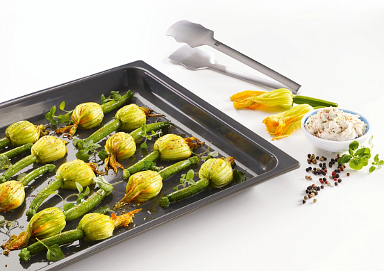 Универсальный противень Miele HUBB 71 с антипригарным покрытием PerfectClean используется при жарке с грилем и вставкой для жарки. В поддоне собирается мясной сока и жир. Устанавливается на направляющие FlexiClip или в боковые держатели.