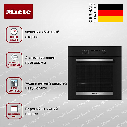 Одной из особенностей Miele H 2467 B является система AirFry, которая позволяет готовить хрустящие блюда с минимальным количеством масла. Каталитическая очистка задней стенки упрощает уход за прибором, а дверца CleanGlass обеспечивает легкость в уходе за стеклом. Телескопические направляющие FlexiClip обеспечивают удобный доступ к блюдам, а система охлаждения с холодным фронтом гарантирует безопасность использования.