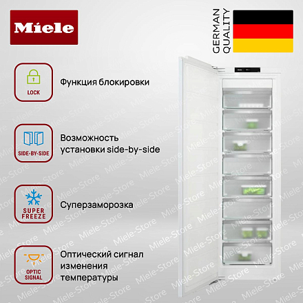 Морозильник Miele FNS 7770 E — это встраиваемая модель, благодаря чему ее можно установить рядом с холодильником. Она обеспечивает идеальные условия для хранения различных видов продуктов.