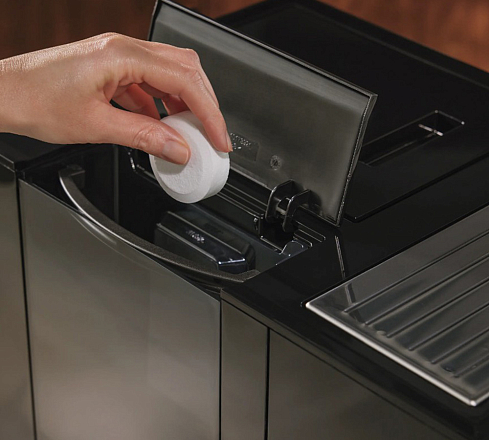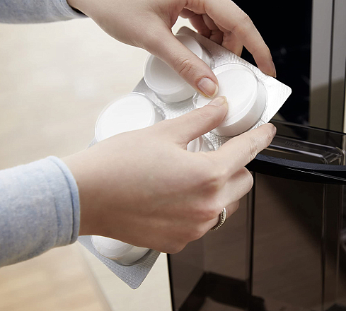 Таблетки для удаления накипи Миле хорошо растворяются даже в холодной воде. Они убирают любую накипь и очень эффективны. После их использования запчасти кофемашины остаются защищенными еще некоторое время.