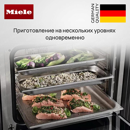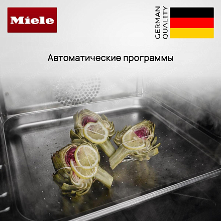 Благодаря технологии SoftClose/SoftOpen, дверца CleanGlass плавно открывается и закрывается. Прибор позволяет готовить на пару и четырех уровнях одновременно. Программа отвода пара перед окончанием приготовления предотвращает перегрев. Внутренняя камера изготовлена из нержавеющей стали. Полностью откидной ТЭН гриля и ТЭН в днище для уменьшения образования конденсата обеспечивают равномерное распределение тепла. Контейнер для конденсата за моторизованной панелью управления и сливной фильтр обеспечивают легкую очистку. Количество уровней боковых направляющих - 4. Петли двери расположены снизу. Освещение BrilliantLight обеспечивает хорошую видимость.