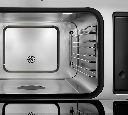 Дверца CleanGlass обладает специальным покрытием, которое предотвращает накопление грязи и жира. Это упрощает уход за пароваркой и сохраняет ее внешний вид. Дверца легко очищается и всегда остается чистой и прозрачной. CleanGlass делает использование пароварки более гигиеничным и удобным, обеспечивая идеальную видимость внутреннего пространства и процесса приготовления.
