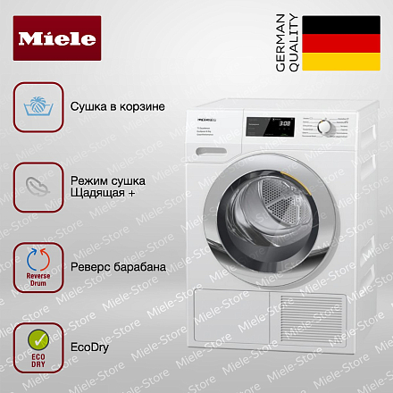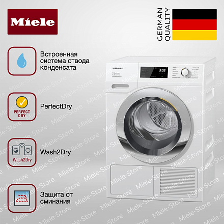 Сушильная машина Miele TEF775WP — отдельностоящая модель из коллекции ChromeEdition с новой программой DryCare 40 и функцией HygieneDry.