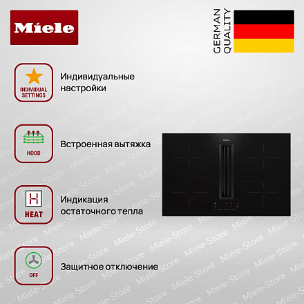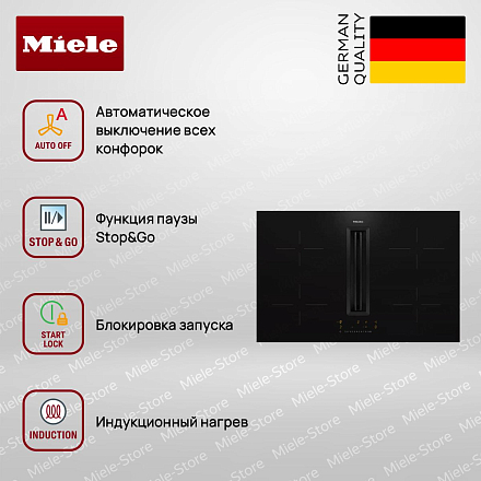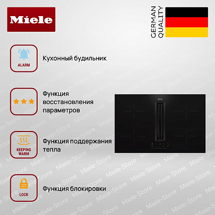 Индукционная панель Miele также оснащена рядом дополнительных функций для максимального комфорта: кухонный будильник, индикация работы, индивидуальные настройки, функция восстановления параметров, защитное отключение и блокировка запуска. Встроенный охлаждающий вентилятор и защита от перегрева обеспечивают надежность и долговечность устройства. Уровень шума варьируется от 46 дБ на минимальной скорости до 70 дБ на интенсивной, что делает ее тихой и ненавязчивой в работе.