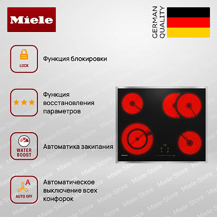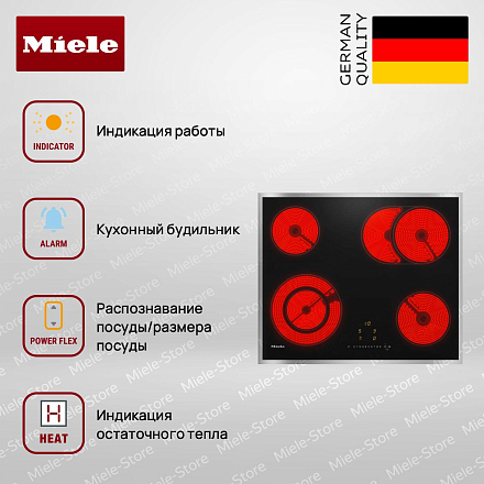 Стеклокерамическая варочная панель Miele KM 6521 FR представляет собой идеальное сочетание современного дизайна и передовых технологий. Элегантная черная поверхность из стеклокерамики дополнена рамкой из нержавеющей стали, что придаёт устройству изысканный внешний вид и позволяет ему гармонично вписаться в любой интерьер. Сенсорные элементы управления EasySelect обеспечивают удобство и простоту использования, а яркий жёлтый дисплей позволяет легко отслеживать выбранные настройки. Благодаря независимой установке и накладной конструкции, устройство может быть размещено в любом удобном месте на кухне, что делает его универсальным решением для любого дома.